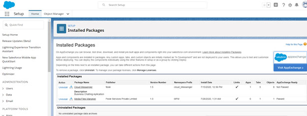 Once you will click on the “Done” button after the installation of Media Files Player, you will be redirected to your Salesforce Org’s installed packages page.